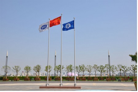 18米不銹鋼錐形旗桿合肥德電新能源汽車股份有限公司安裝完成