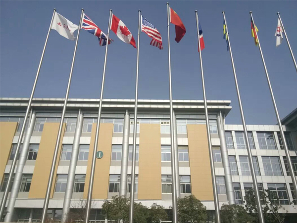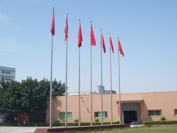 8、加工廠旗桿通常選用3支旗桿,但假如是中外合作或外資企業加工廠也能用5支或大量,高寬比通常為8米~15.8米,如工業廠房或寫字樓為雙層的可采用更高某些。