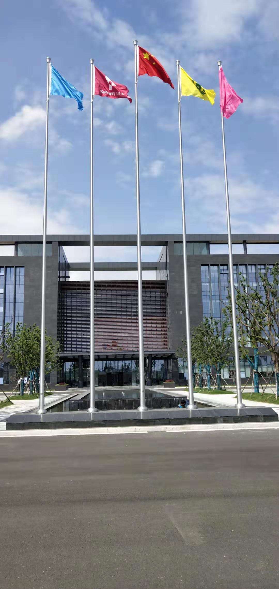 電動旗桿的升降系統操作進行簡單使用方便,特別是中國國歌播放時可設置與國歌速度可以升降一置,達到國歌播放活動結束,國旗剛好升到頂部,是其它的旗桿類型所不能及的,一些企業用戶安裝了旗桿后想改為為電動旗桿,今天主要就這方面對面的專業知識內容講解分析一下。不銹鋼旗桿為分專業電動不銹鋼旗桿、手搖不銹鋼旗桿、風動不銹鋼旗桿,電腦數控不銹鋼旗桿。是一種用于各種廠礦、企事業單位、生活小區、車站、海關碼頭、學校、體育場館、高級酒店、城市廣場等等做為一種標識而樹立的一種經過加工后不易生銹的鐵質空心桿。電動旗桿一種用電控制旗幟升降的金屬桿。其控制系統是用步進電機進行傳動和控制器配合工作以達到旗幟升降的目地。錐形旗桿采用了的分節可拆式技術、一種升旗裝置及其傳動技術、360度順風球冠技術。有可拆式和錐形一體兩種外形。材料由高強度純鋁合金材料或者不銹鋼作為旗桿管材,具有質量輕而且強度高,旗桿表面采用的最先進的氟碳噴涂處理技術,使得產品表面質感勻稱平整、觀賞性極強、防護性與耐候性強。