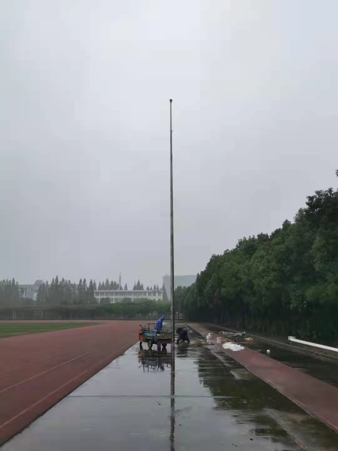 六安市職業(yè)技術(shù)學(xué)院1支16.8米、1支16米錐形旗桿,此次左尚金屬安徽耀龍為六安市職業(yè)技術(shù)學(xué)院生產(chǎn)的旗桿為優(yōu)質(zhì)不銹鋼制造,旗桿錐形挺拔高大,是錐形外置式的旗桿,內(nèi)藏不銹鋼繩,旗桿外無旗繩,免去旗桿與旗繩碰撞產(chǎn)生刮痕,從而可能導(dǎo)致桿體易生銹。