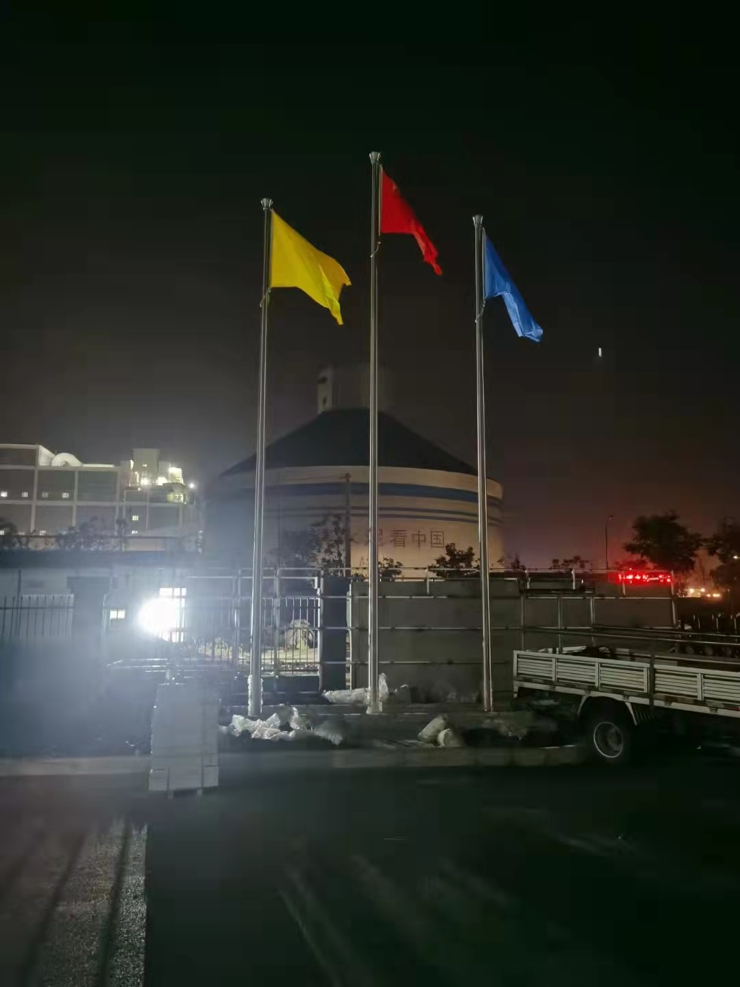 安徽國風塑業(yè)股份有限公司新廠區(qū)三支9米錐形旗桿,此次左尚金屬安徽耀龍為安徽國風塑業(yè)股份有限公司新廠區(qū)生產(chǎn)的旗桿為優(yōu)質(zhì)不銹鋼制造,旗桿錐形挺拔高大,是錐形外置式的旗桿,內(nèi)藏不銹鋼繩,旗桿外無旗繩,免去旗桿與旗繩碰撞產(chǎn)生刮痕,從而可能導(dǎo)致桿體易生銹。
