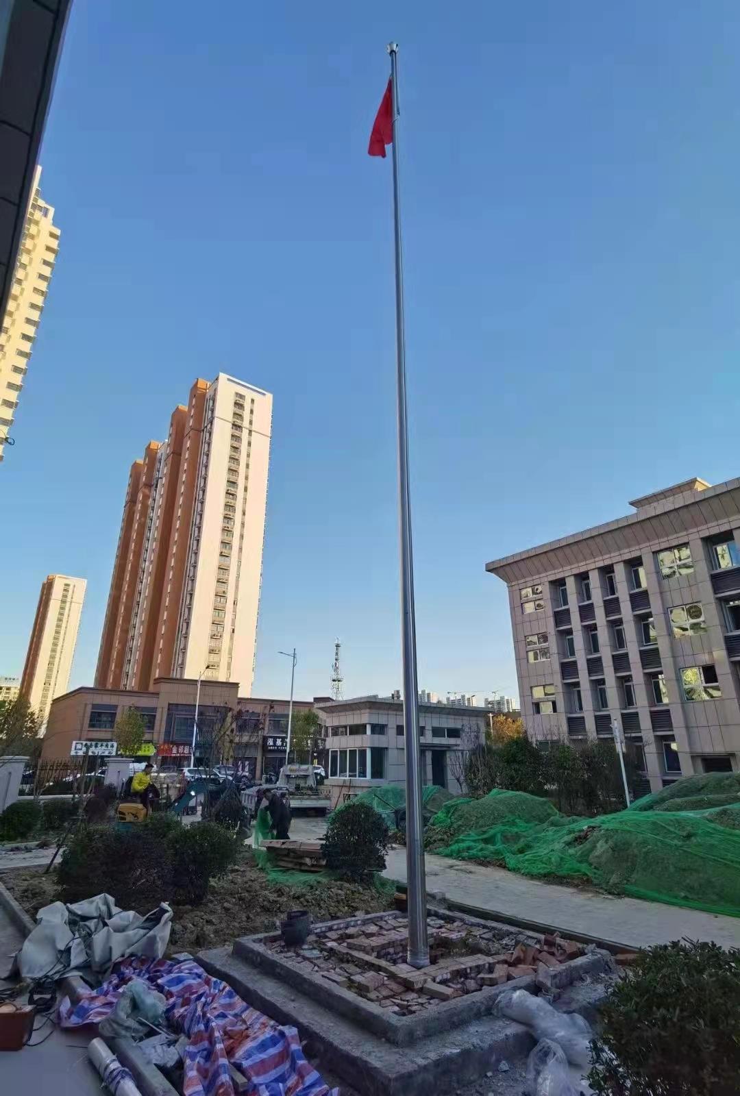 宿州市埇橋區(qū)三里灣派出所15米不銹鋼錐形旗桿,此次左尚金屬安徽耀龍為宿州市埇橋區(qū)三里灣派出所生產(chǎn)的旗桿為優(yōu)質(zhì)不銹鋼制造,旗桿錐形挺拔高大,是錐形外置式的旗桿,內(nèi)藏不銹鋼繩,旗桿外無旗繩,免去旗桿與旗繩碰撞產(chǎn)生刮痕,從而可能導(dǎo)致桿體易生銹。