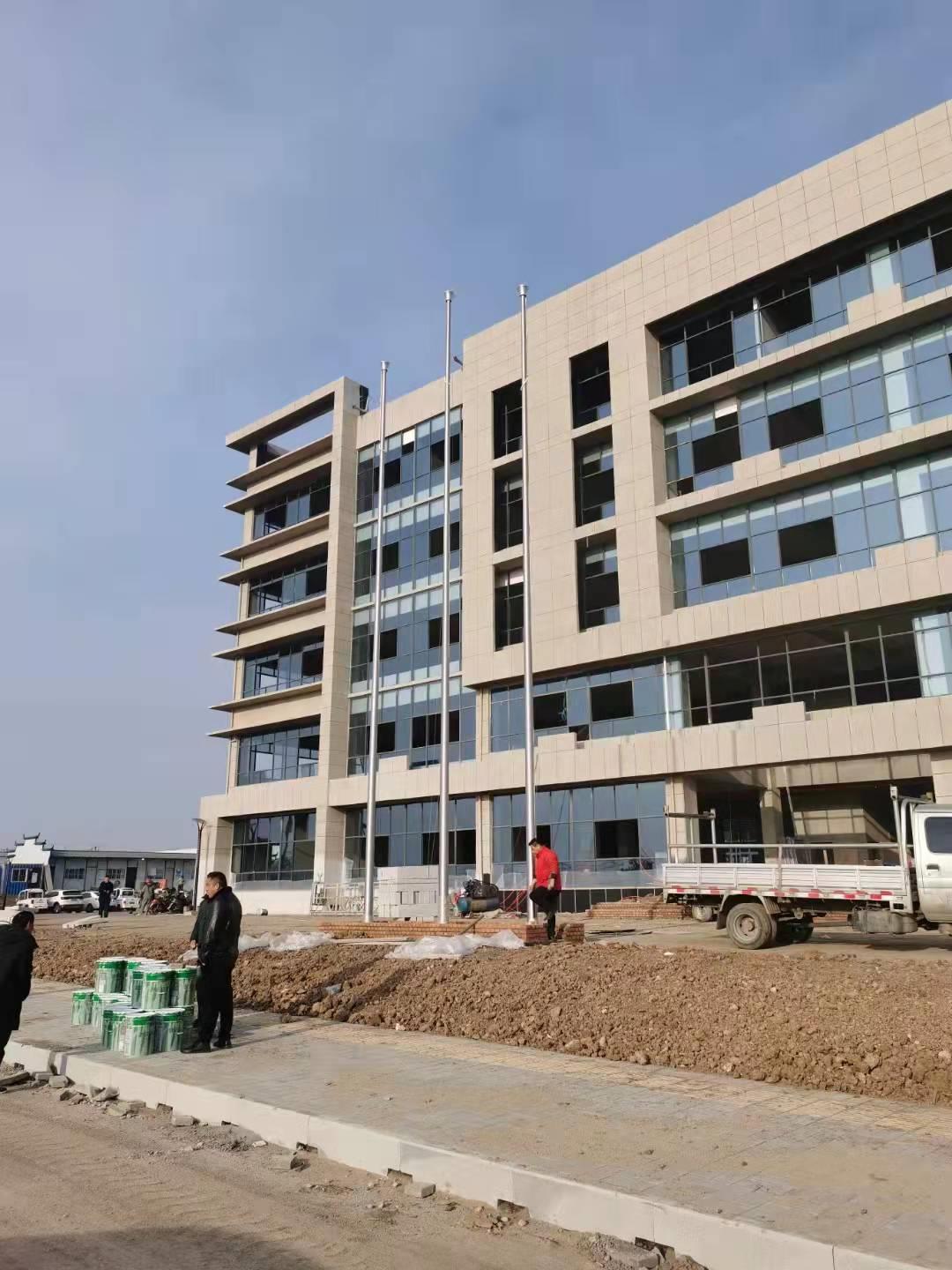 明光市玉鵬新材料科技有限公司12.8米+12米2不銹鋼錐形旗桿,此次左尚金屬安徽耀龍為明光市玉鵬新材料科技有限公司生產的旗桿為優質不銹鋼制造,旗桿錐形挺拔高大,是錐形外置式的旗桿,內藏不銹鋼繩,旗桿外無旗繩,免去旗桿與旗繩碰撞產生刮痕,從而可能導致桿體易生銹。
