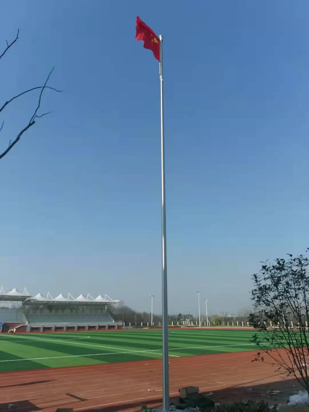 六安市金安職業(yè)學(xué)校手動(dòng)錐形旗桿,此次左尚金屬安徽耀龍為六安市金安職業(yè)學(xué)校生產(chǎn)的旗桿為優(yōu)質(zhì)不銹鋼制造,旗桿錐形挺拔高大,是錐形外置式的旗桿,內(nèi)藏不銹鋼繩,旗桿外無旗繩,免去旗桿與旗繩碰撞產(chǎn)生刮痕,從而可能導(dǎo)致桿體易生銹。